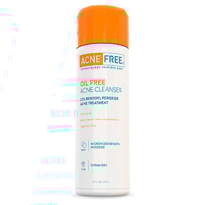 Acne Free Oil Free Acne Cleanser is formulated with 2.5% micronized benzoyl peroxide that quickly and deeply penetrates pores to help clear blemishes and prevent new ones from forming. Suitable for face and body, this fragrance-free acne wash also features ceramides to nourish the skin and help it hold on to moisture. To complete your body anti-acne regimen, follow with Acne Free Body Clearing Spray.